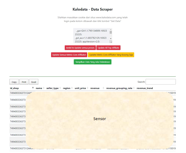 disinilah kita bisa berkreasi sebagai pegiat otomasi data, karena hampir tidak mungkin kalau kita klak klik data manual satu-satu dan menggabungkannya dengan tanpa id (fyi : nama bisnis/produk/koten kreator bisa saja sama, maka kita memerlukan id).